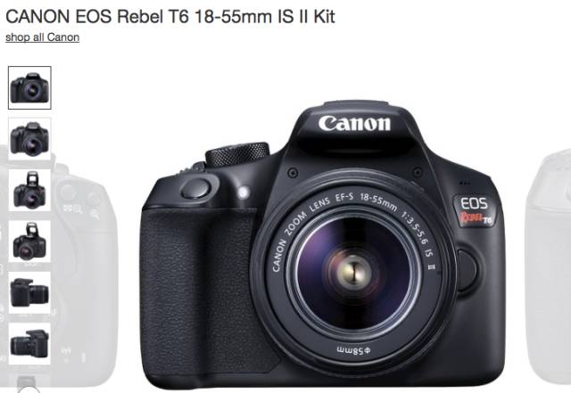 Canon T6+18-55 &75-300mm 套头+官方相机包+16GB存储卡,黑五价$449,立省$300