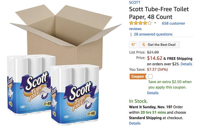 Scott 无芯厕纸 48卷,现价$12.12,立省$9.87,用Subscribe &Save结账。
