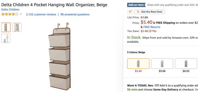 Delta Children 4层悬挂式可折叠收纳袋,现价$5.61,立省$2.48