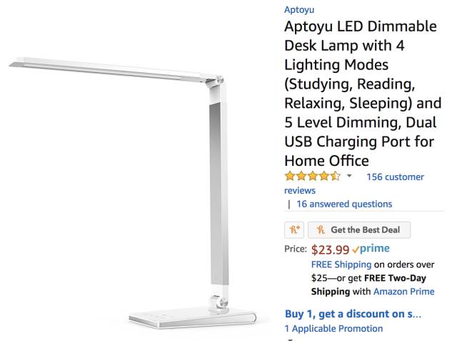 Aptoyu 多功能LED 护眼 USB 充电端口台灯,使用优惠码JNKTFRAB $15.99, 立省$34。