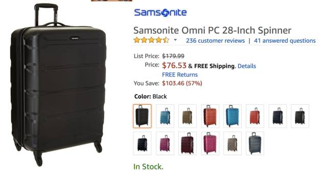 Samsonite Omni 硬壳万向轮拉杆旅行箱 28寸,部分颜色$76.53, 立省$104.46