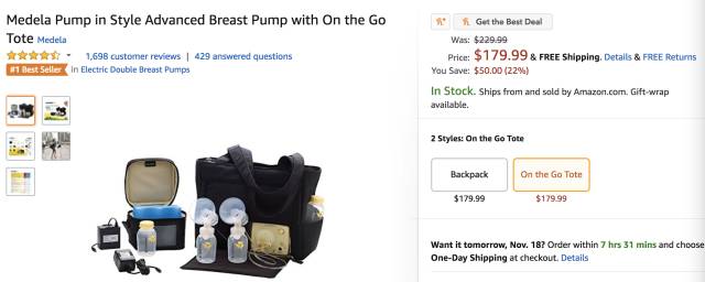 Medela 美德乐 Pump in Style 高级双边吸乳器 ,现价$179.99,立省$90