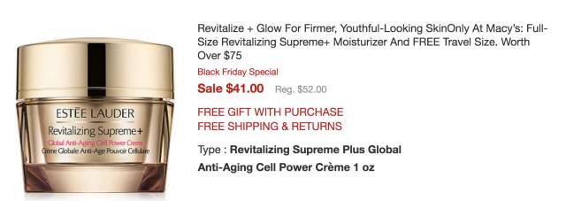 雅诗兰黛多效修护系列面霜30ml 现价$41,立省$11,还送15ml的旅行装,相当于花折扣的钱买了45ml。