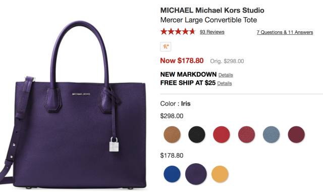 Michael Kors Mercer 大号包, 现价$178,立省$120