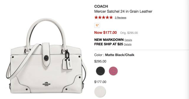 coach mercer小号包白色 现价$177,立省$118