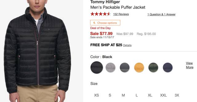 Tommy Hilfiger夹克,黑五价$69.99,立省$125
