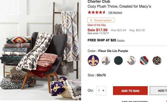 Charter Club 保暖毯,尺寸为50" x 70"(127x178cm), 现价$17.99,立省$32.