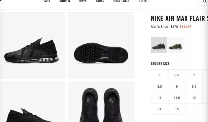 NIKE.AIR MAX FLAIR现价$108.7, 立省$61.3