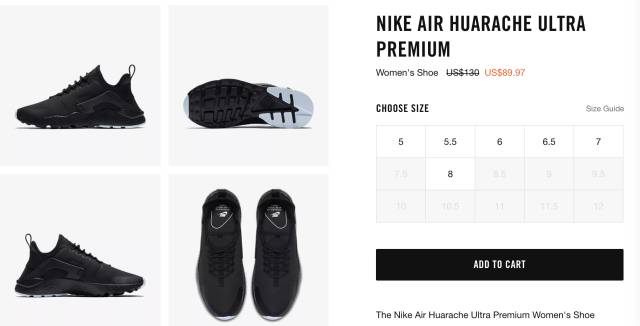 NIKE AIR HUARACHE ULTRA PREMIUM 现价$67.5,立省$62.5