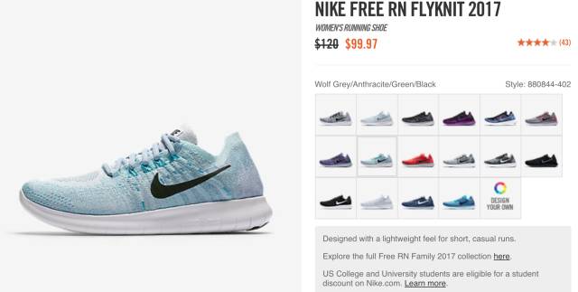 NIKE FREE RN FLYKNIT 2017 现价$75,立省45
