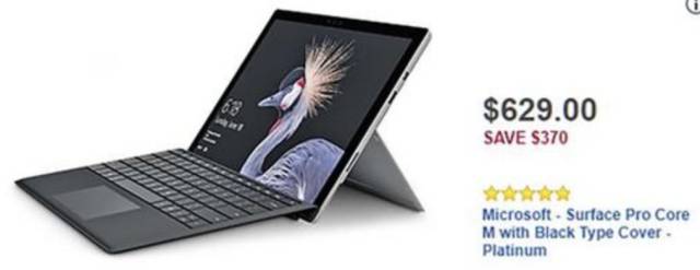 2017 新款 Microsoft Surface Pro 白金色带黑色Type-Cover(M3,128GB) ,黑五价$ 629,立省$370刀