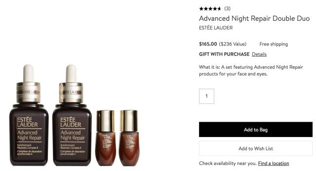 Estee Lauder雅诗兰黛小棕瓶精华+眼部精华套装(价值$236)现价$ 165, 立省$71