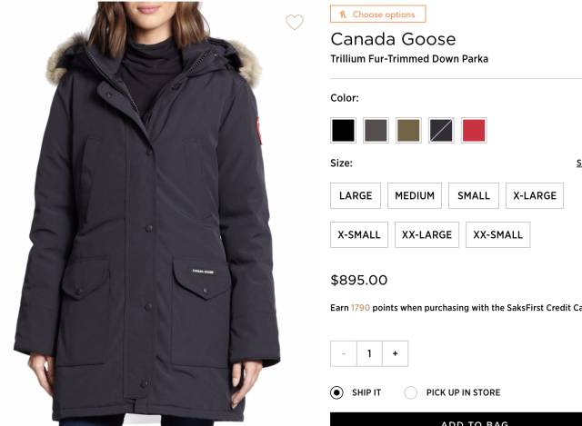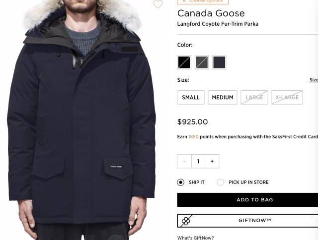 Canada Goose加拿大鹅羽绒服女士$895,男士$925