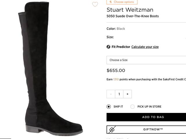 Stuart Weitzman 5050过膝长靴,$655