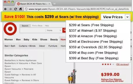 PriceBlink可用于比较各类产品价格。安装PriceBlink之后,当你浏览一个产品,PriceBlink自动扫描超过4000商户价格,并升序排列,供比较选择。