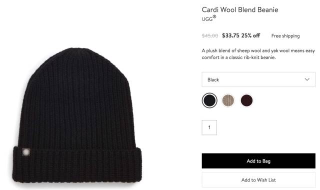 UGG羊毛帽,现价$33.75 ,立省$11.25