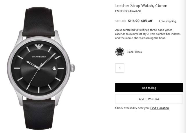 Armani阿玛尼皮表带手表,现价$116.9,立省$78.1