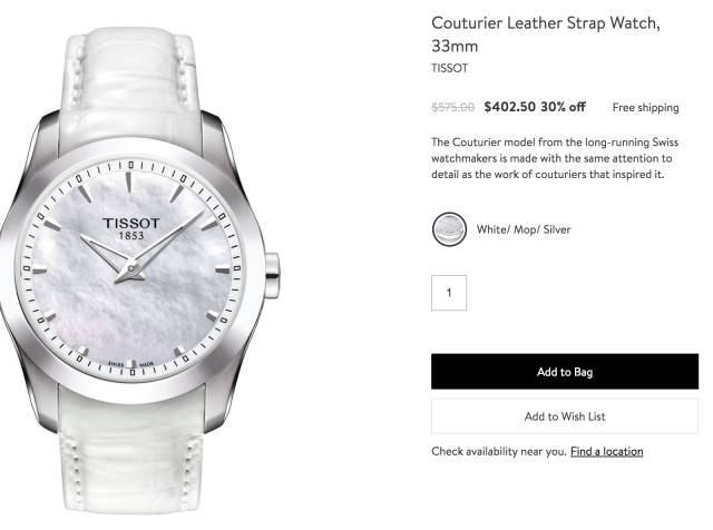 TISSOT天梭手表33mm表盘 $402.5,立省$172.5