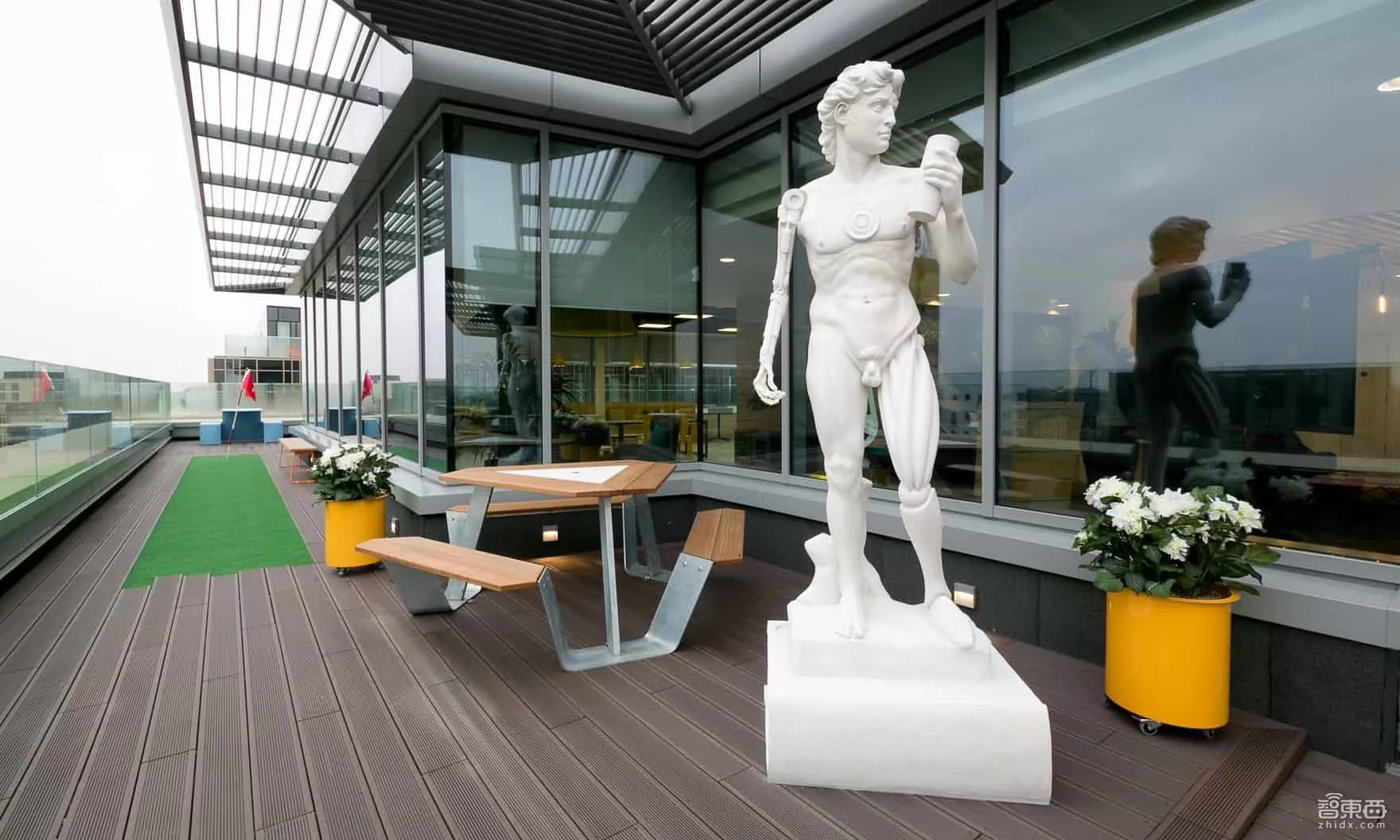 每一层都有天台,员工在这里可以呼吸新鲜空气。剑桥经常会下雨。虽然只有3层,但是里面有2个咖啡厅。在亚马逊创新文化中,咖啡扮演了重要角色。