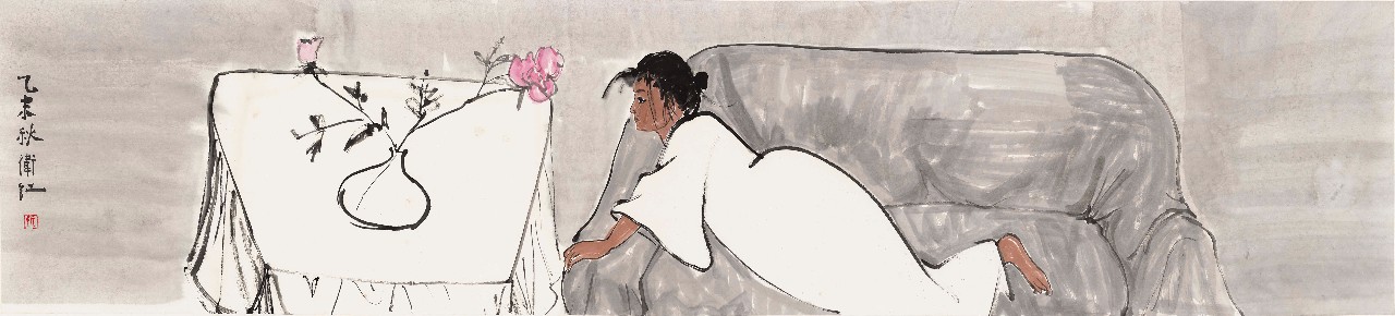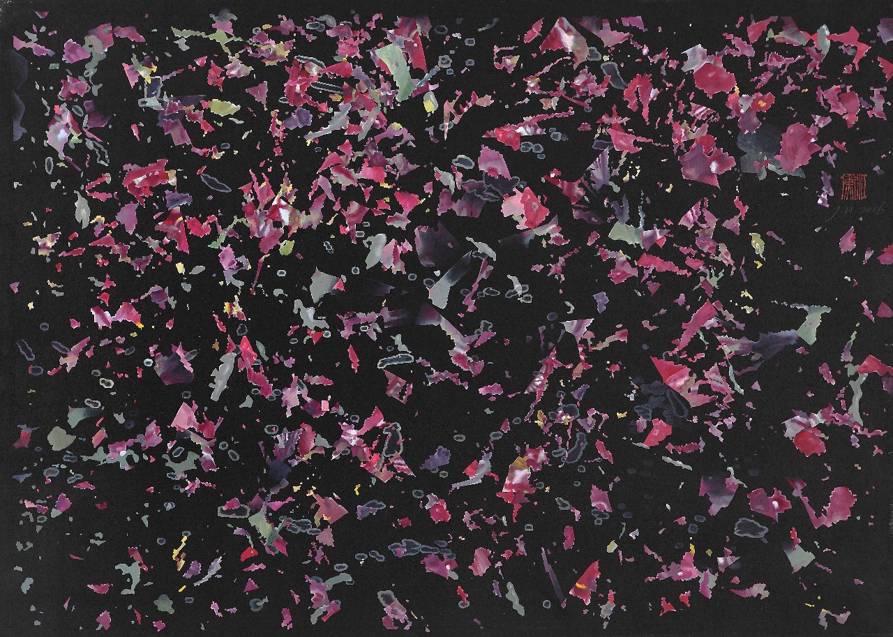 《落花》100X70CM 宣纸水墨 2016年 江衡《Falling flowers》