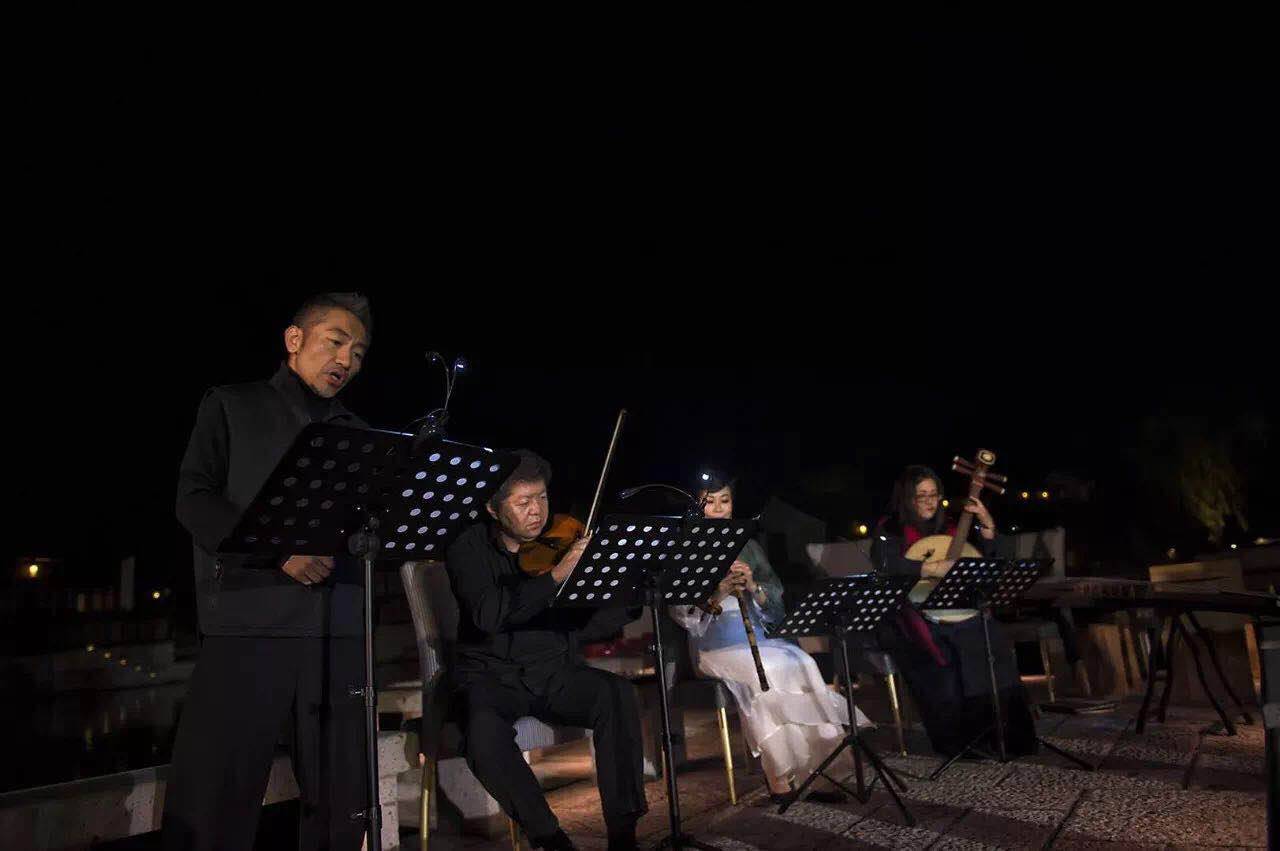 提到音乐会,通常印象里往往会浮现空旷敞亮的大剧院、音乐厅,台上台下隔着不能逾越的间距。相比之下, 雅集显得别具一格,选在了由全国各地老派建筑修复改建的兰亭安麓酒店山水之间,如书法家王羲之在《兰亭集序》中的一段描述“此地有崇山峻岭,茂林修竹;又有清流急湍,映带左右,引以为流觞曲水,列坐其次。”不过,有“丝竹管弦之盛”。