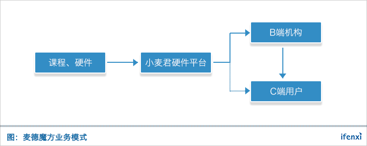 麦德魔方通过与B端机构合作推广小麦君。B端机构缴纳押金后就可以使用小麦君,麦德魔方可以免费提供管理系统、运营培训和师资培训等服务。