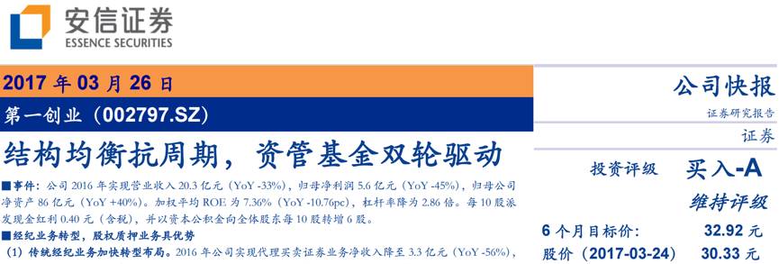 也就是这一天,安信证券发布题为《结构均衡抗周期,资管基金双轮驱动》研究报告,给予第一创业“买入-A”评级,目标涨幅8.54%。