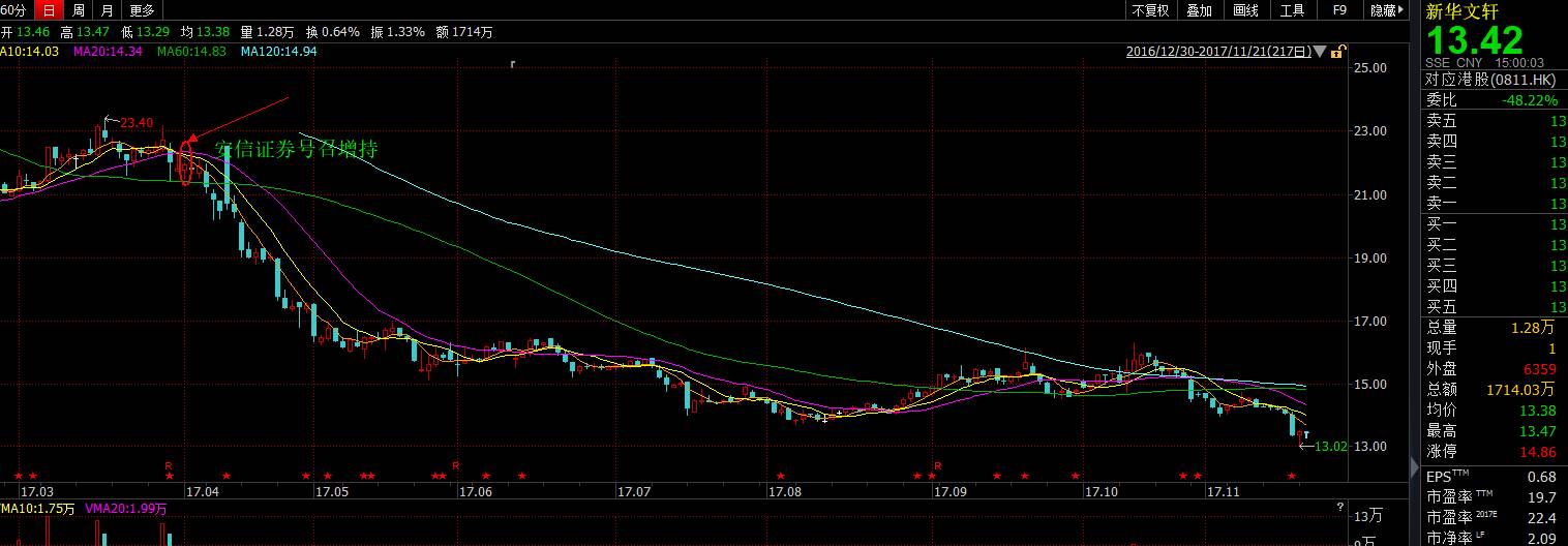 新华文轩股价真是一点面子都不给,在没有达到目标价之前,就开始在下跌路上一去不回头。