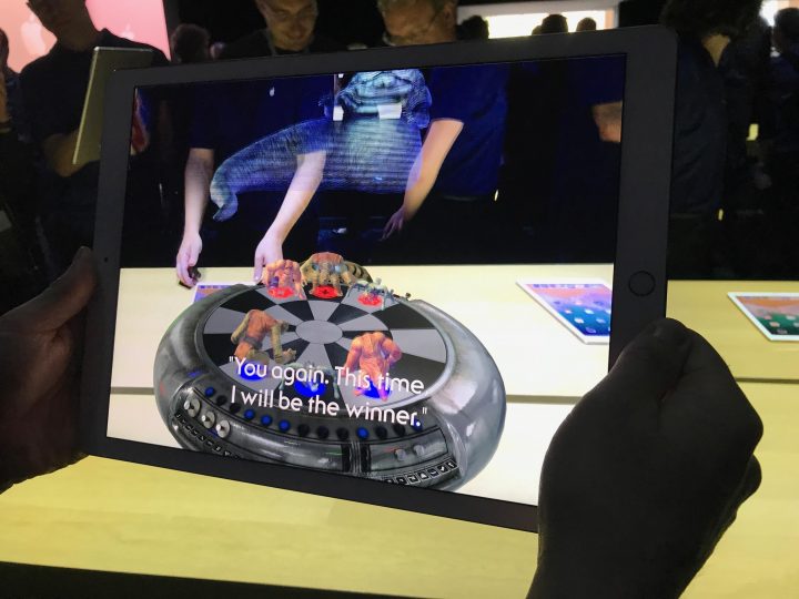 大手笔的投入之后,成果当然也是显著的。在今年 6 月的全球开发者大会(WWDC)上,苹果终于发布了其在 AR 领域的第一个成品——ARKit。作为一个连接硬件和操作系统算法的原生态开发工具包,它允许开发者直接在 iOS 平台中开发跟 AR 技术相关的应用。