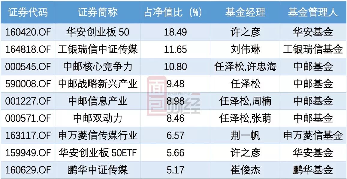 从公募基金今年三季报来看,在重仓股前十名中含有乐视网的就有21家基金管理公司,及各基金公司旗下的多只基金。而其中,乐视网持股市值占基金净值超过5%的有以下基金:
