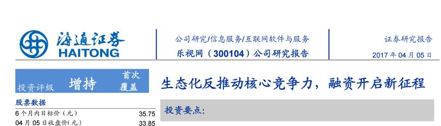 更为尴尬的是,即便在乐视现金流危机爆发之后,仍然有券商给出增持评级,比如海通证券2017年4月份的两份研报,给出的都是增持评级。