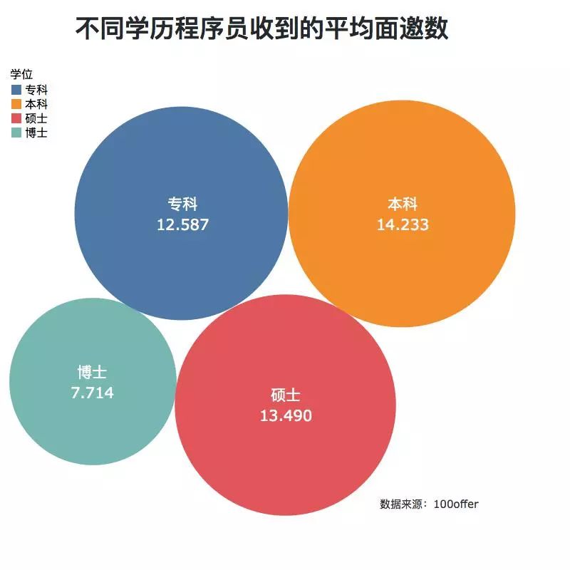 不同学历程序员所获面邀平均数相差不超2封