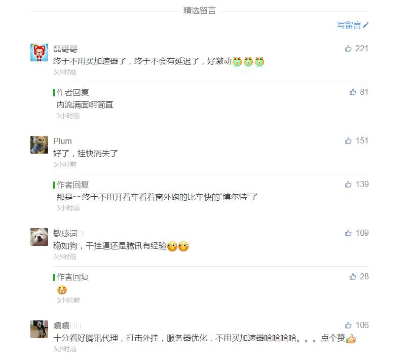 在腾讯官方微信的留言中,大部分玩家希望腾讯能提供更好的网络服务和游戏环境