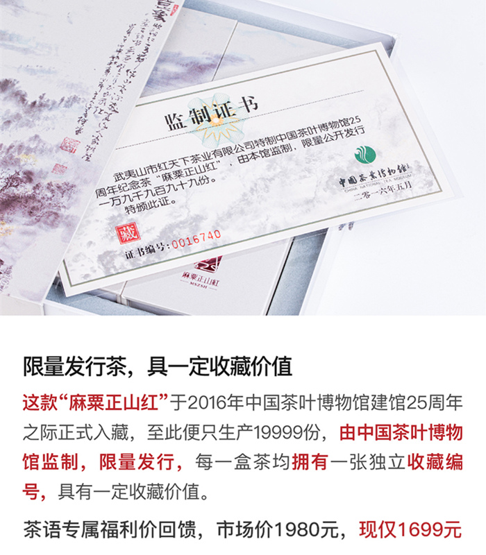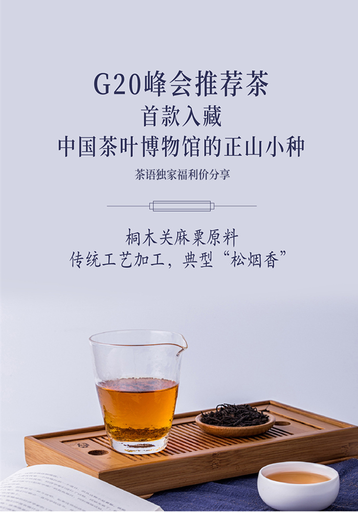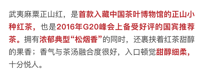 首款入藏中国茶叶博物馆的武夷正山小种,G20峰会推荐国宾礼茶。产自武夷山自然保护区桐木关的核心山场,平均海拔1200米的“麻粟”。