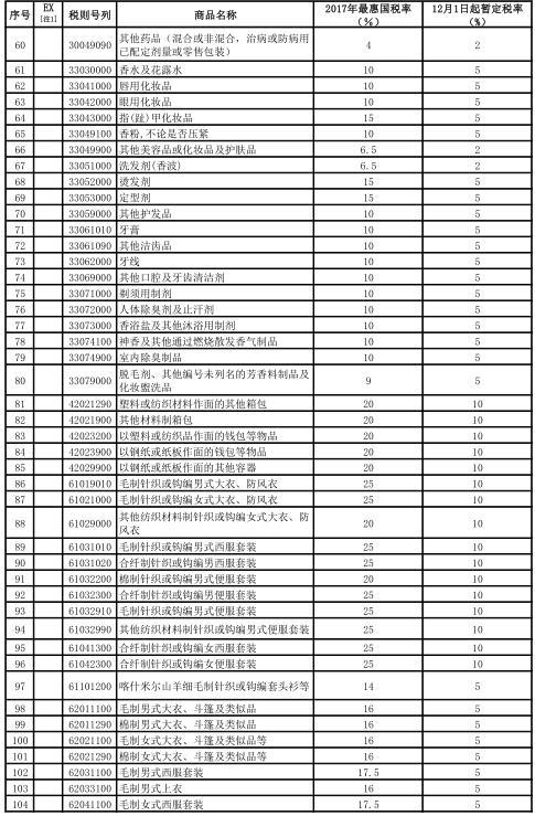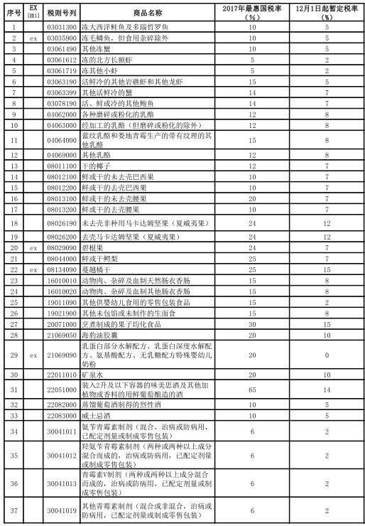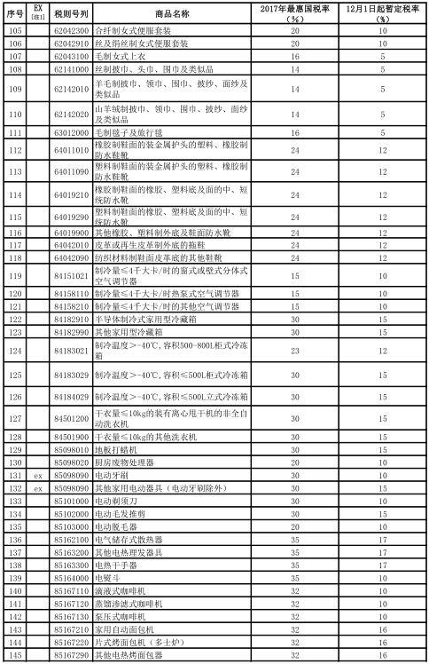 经国务院关税税则委员会审议通过,并报国务院批准,我国将对部分消费品进口关税进行调整。自2017年12月1日开始实施。