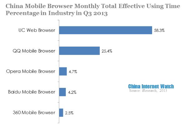 在被阿里收购之前,UC的使用时长已经远远甩开了中国市场的对手。