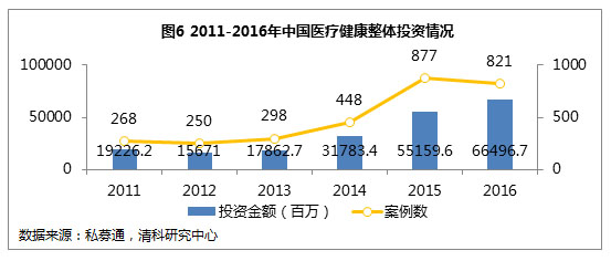 资方视角:中国医疗健康市场整体投资热度持续升温,投资机构倾向于前期投资 随着中国人民生活水平的提高,以及环境污染、现代化快节奏生活给都市居民带来的各种亚健康问题,人们关注自身健康的意识逐渐增强,医疗健康市场需求不断增加。在各项政策红利的推动下,大量的企业和资本纷纷涌入医疗健康行业。从2014年开始,医疗健康市场整体投资活跃度快速增加,投资额快速增长,2016年共发生800多起投资事件,投资约665亿元人民币。从近6年累计的中国医疗健康投资案例中,投资机构倾向于前期投资,有45%的案例在A轮实现融资,天使轮和B轮紧随其后,分别为14%和13%。