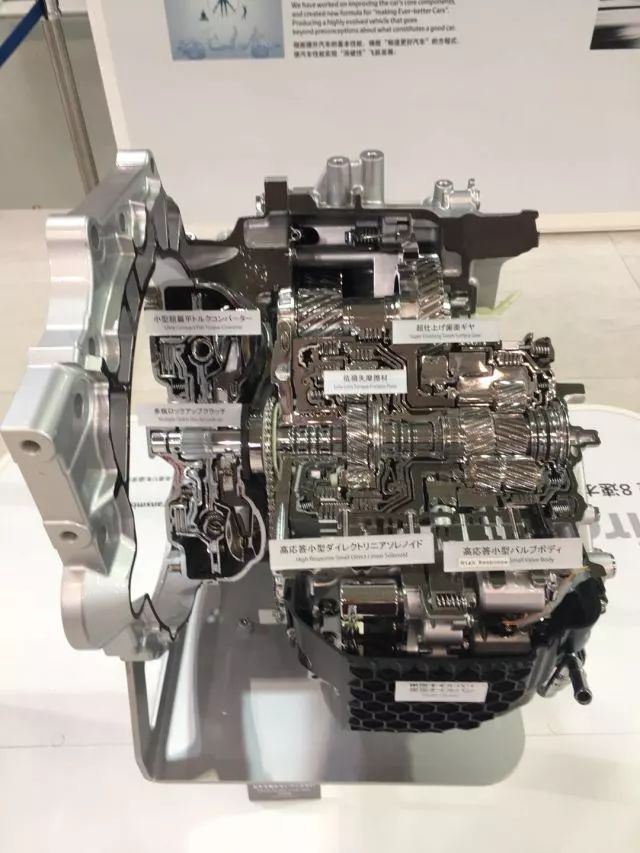 其次,这次8AT的变速箱,则在技术上突出了“小型化”这个概念。当8个档位横置的集中在TNGA的前置车厢中时,保证零件强度的同时将零件尽量做小就成了制造的重中之重。丰田这次对于啮合齿轮、液力变矩器、变速箱油路通道、换挡装置和应答机构都进行了小型化处理,并且对于金属零件表面进行了低摩擦损失的涂层涂装。这些技术带来的是一台可以横向放置的8AT变速箱,而实际的大小却与以前的爱信6AT所差无几。