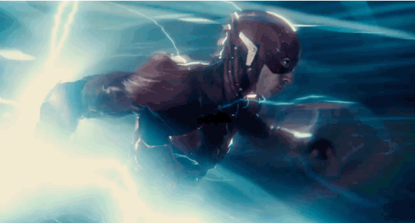 闪电侠的人设总让人不可避免地想到快银。他能快速移动的超能力是不幸被雷电劈中之后获得的,但是相比于快银,他的速度是光速,且可逆转时空,还可穿越屏障。《正义联盟》之中的闪电侠像一个偶像少年,还没做好战斗准备,还只是单纯借助自己超能力见机逃命。