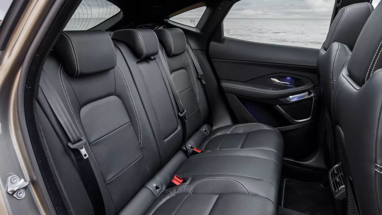 而且在空间上,对前排乘客也很偏心,由于倾斜的背部和巨大的车轮拱架(可容纳最大的20英寸轮毂),从而使后排乘坐空间受到挤压。前面的存储空间很好,中控台里面有多个USB充电点,有两瓶一升矿泉水的存放空间,在这妥协的后排里,乘客腿部空间明显很紧迫。捷豹声称,后备箱提供了20.4立方英尺的空间,不过这听起来比看起来更大,或许是后备箱不够规整的原因。所以我们建议将你的登机箱或高尔夫球杆带到车内测试中,来检查它是否满足你的生活。