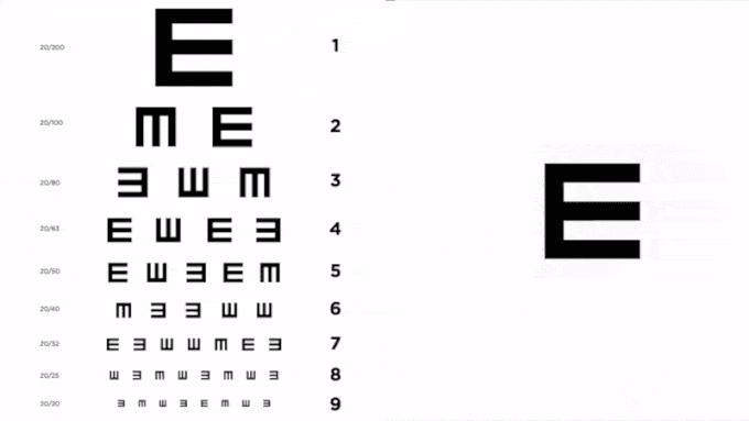 APP 会将视力表的 E 随机滚动播放,背诵作弊这种事在体侧过程中就可以省省了。