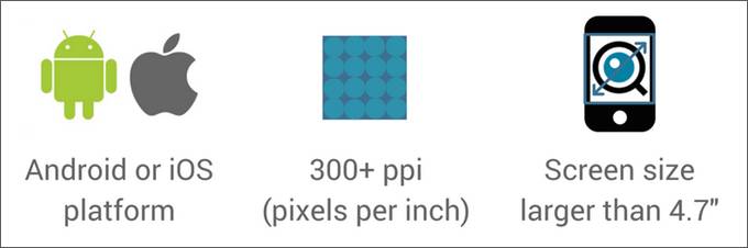 手机的屏幕分辨率需大于 300ppi ,屏幕尺寸需大于 4.7",才能保证 EyeQue Insight 测试的可视性。