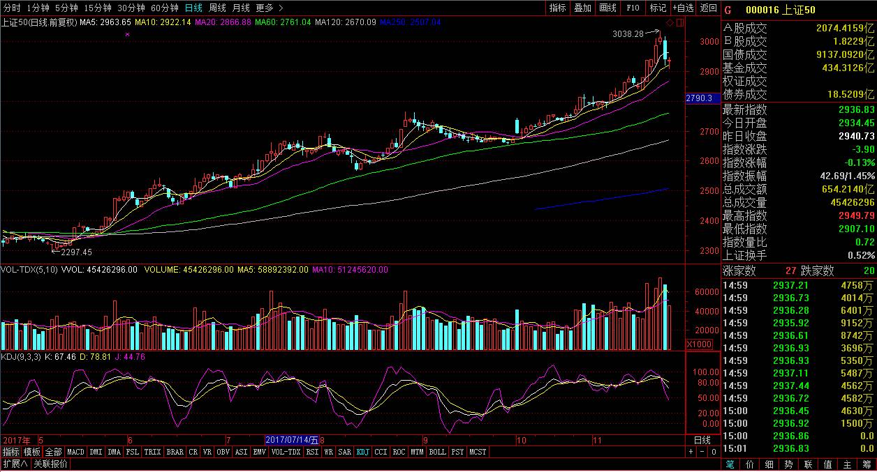 1.上证50和沪深300的下跌可以定性为指数的短期修正
