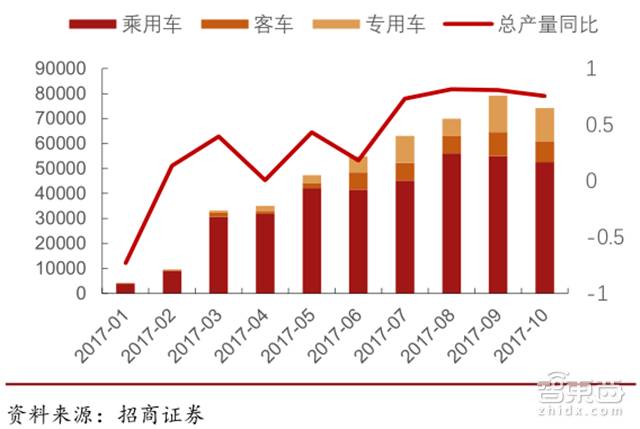 由于2018 年补贴继续退坡预期,招商证券认为18年新能源企业利润承压,预估产销量95-100万辆(35%-40%增速),随着双积分制在19-20年考核+全球汽车集团新能源汽车集中放量,19-20年会是新能源汽车大年。