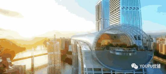 在重庆朝天门,解放碑、江北嘴、和弹子石三大城市CBD核心,新加坡跨国企业凯德集团,投资约240亿建造了一座独特风帆造型的天际线地标建筑群——重庆来福士广场。在约250米空中水晶连廊内,导演了一部比肩“全球城市”生活的未来大片。
