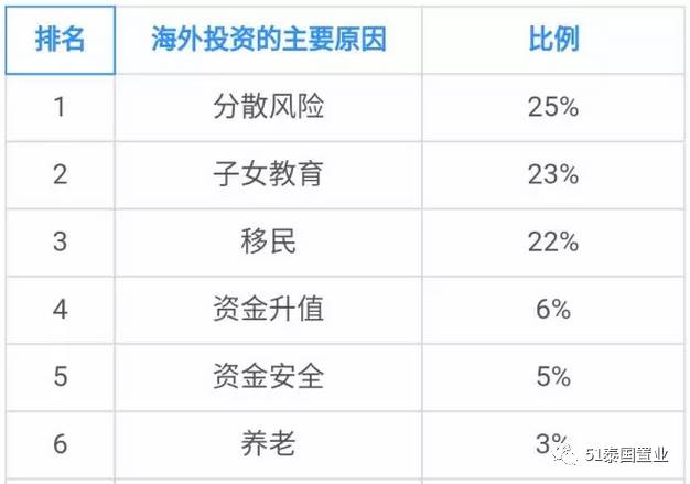 胡润研究院发布的报告显示,“分散风险”是中国投资人群购置全球房产最主要的原因,正如不要把所有鸡蛋放进一个篮子的道理一样,投资者寻求多种投资方式,以分散风险。其次留学、移民、生活也是海外置业的重要原因。