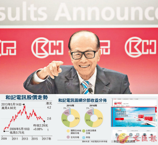 HGC2016年的综合收益(包括流动通讯及固网业务的服务及硬件收益),由2015年的220.42亿元减少45%至2016年的120.24亿元。逾99%的收益跌幅均源自市场于年内对新智能手机的需求减少,导致硬件收益下降所致。2017年9月7日,该公司举行的股东大会以99.9%的赞成票数通过出售HGC全部股权。未来,HGC为了探寻发展,将更重点拓展新行业市场,为个别行业提供一站式资讯及通讯科技解决方案。电竞行业将是其重点探索的方向之一。