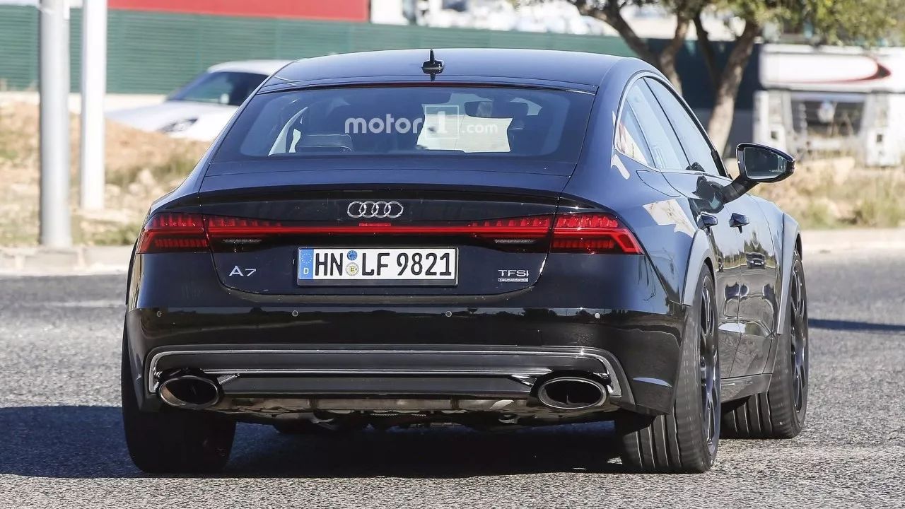 从曝光的谍照看来,这辆全新RS 7的前脸和全新A7似乎并无太大区别,但是参照RS家族的其他成员可以得知,未来量产版车型同样会拥有线条锋利的前后包围。转移到车尾的后方,我们就会发现这辆测试车正是采用了RS车型标志性的双边共两出大口径排气。