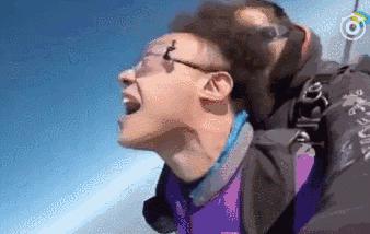 也控制不住发际线,跳个伞头发立即炸毛,震慑力比网红素颜都可怕。(估计这是Eason最想销毁的视频)