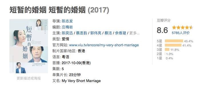 最近又有一部港剧《短暂的婚姻》悄然上映,豆瓣评分曾高达9.1分,如今稳定在8.6,也依然是难得一见的高分。